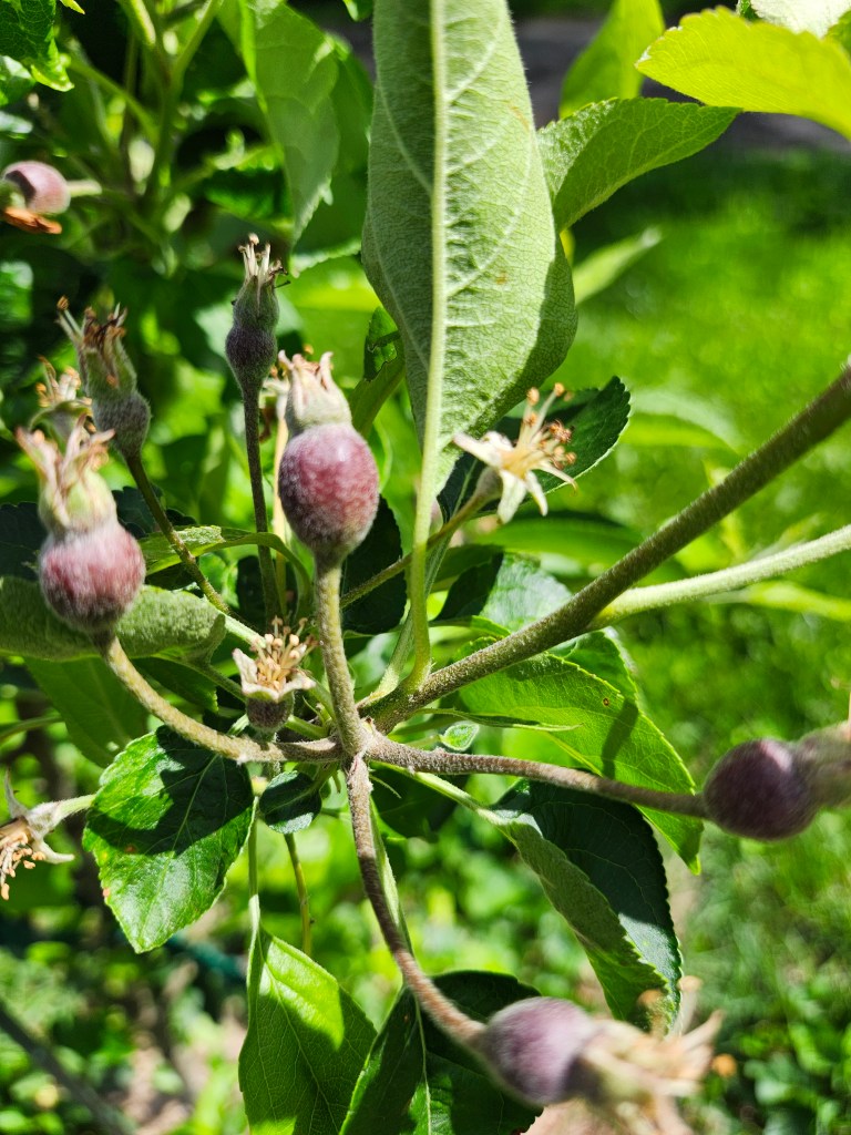 There were a few radishes to pick and an exciting discovery with one of our apple trees. It is looking like this will be the first year the tree will produce some apples. Last year it flowered but nothing more than that so it will be exciting to watch the apples grow this year and a great experience for the children because they both LOVE apples (they did not enjoy the radishes).